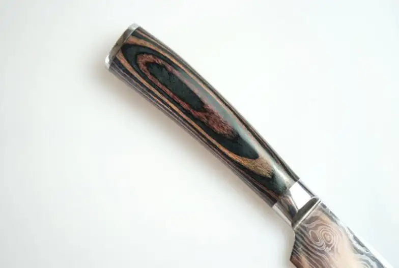Tips: The blade is 7CR17 stainless steel, the surface of the laser Damascus pattern, very beautiful, good workmanship, razor-sharp, keep your kitchen away from the blunt knife, and enjoy your kitchen life!